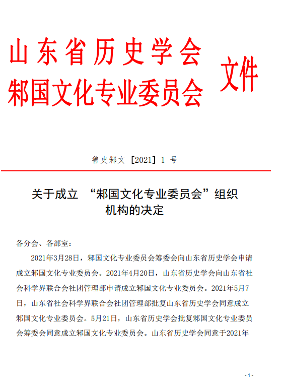 关于召开山东省历史学会邾国文化专业委员会成立大会的预备通知