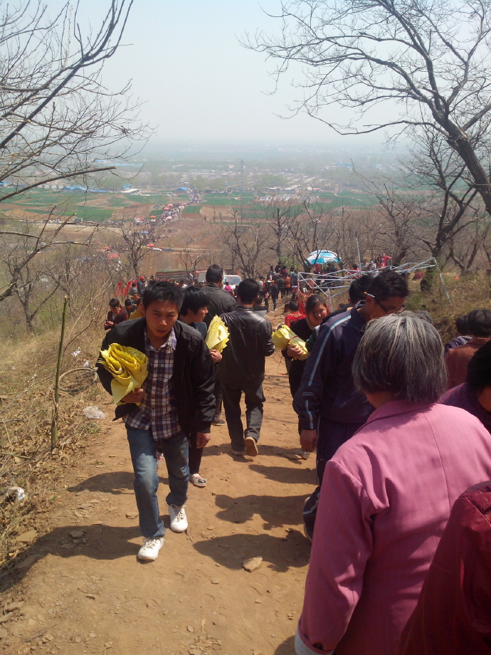 今天是农历三月三,在费县探沂镇王官疃村西的巨龙山,有一场传统的庙会。庙会之所以选在三月三举办,是因为今天是真武大帝的诞辰;九月九还有一场庙会,是真武大帝得道飞升的日子。巨龙山庙会的历史非常悠久,最初是由真武大帝圣诞衍化而来,后来发展成为集纪念、娱乐、购物、会友为一体的大型民间活动。