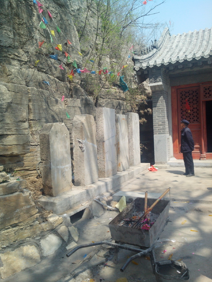 王母宫内有泉井10余处,皆有清泉流出,甚是奇特!巨龙山海拔291米,可一览无余,远处的探沂镇政府历历可见,山脚下村庄错落有致,郁郁葱葱,一派宁静熙洽景象!道长送我四副“惠风和畅”条幅字,浑厚有力,甚是有功底!甚喜甚喜!道长为朱家贤婿,学识渊博,道业深厚,从原始道教谈到祖师张道陵“五斗米”教,王重阳挖“活死人墓”以修道业,创立“全真”道教。主张儒释道三家合一,不专事符箓,倡导积善行德,清净心灵,实践性命双修,挂单丛林。到丘处机西游,面见成吉思汗,一言止杀,皆有新得!王重阳得到与丘处机皆与山东有缘。(汉明)
