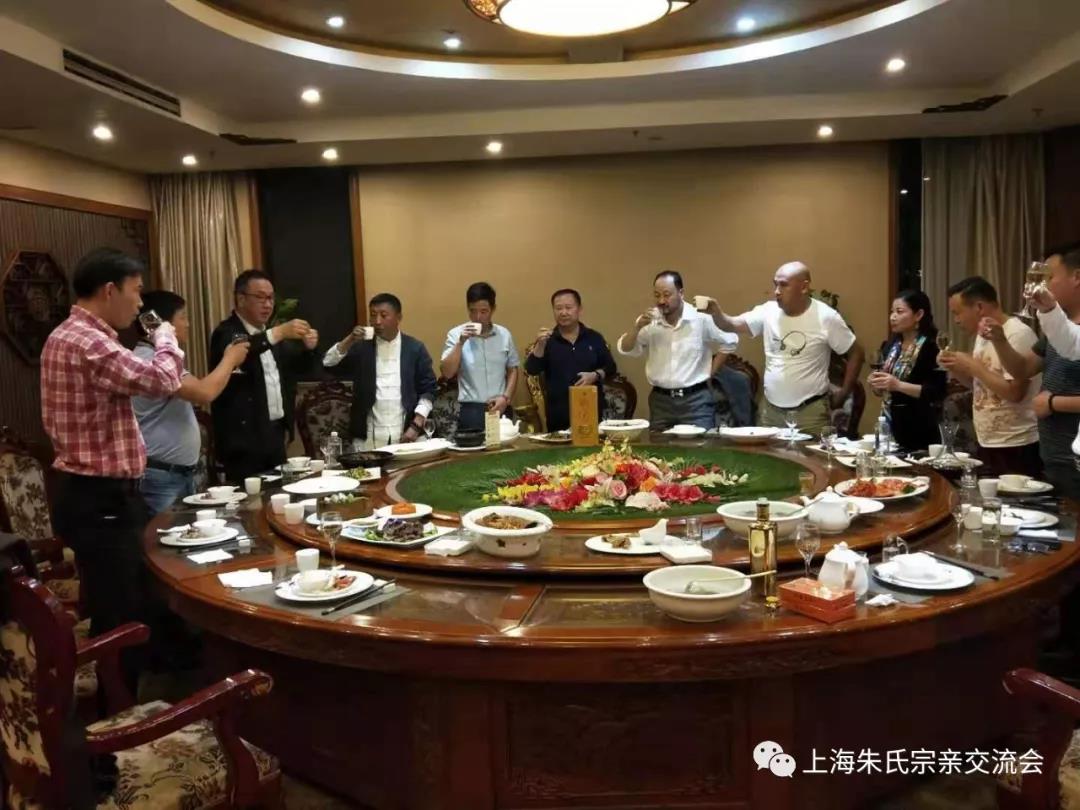 参观介绍后,朱晨源邀请大家一起用晚宴,参加晚宴的人员有:朱尚伟、朱锐、朱才华、朱皓、朱仁光、朱文龙、朱文六、朱才、朱继华、朱鹏、安徽省经理人上海分会会长、秘书长等嘉宾参加。