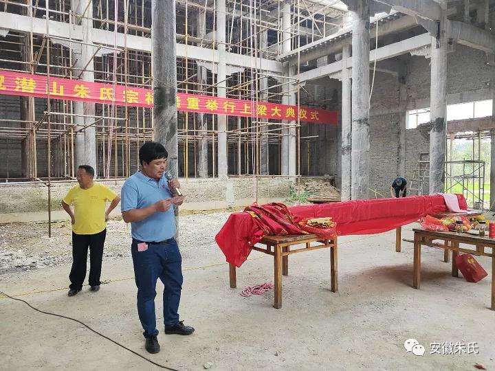 潜山市朱氏文化园(宗祠)上梁庆典于6月9日上午在属地潘铺生态园隆重举行。来自安徽省朱子研究会、安徽朱氏源流志编纂委员会的宗亲代表,来自宁国市和定远县的宗亲代表,以及潜怀岳三市县的朱氏宗亲,约200余人出席了庆典仪式。最为难能可贵的是,为文化园建设捐出巨款的姐姐朱兆君和弟弟朱宣东夫妇,竟然在百忙之中千里迢迢不辞辛苦赶来参加庆典活动,敬宗孝祖、思乡恋亲之情令人感动和钦佩!