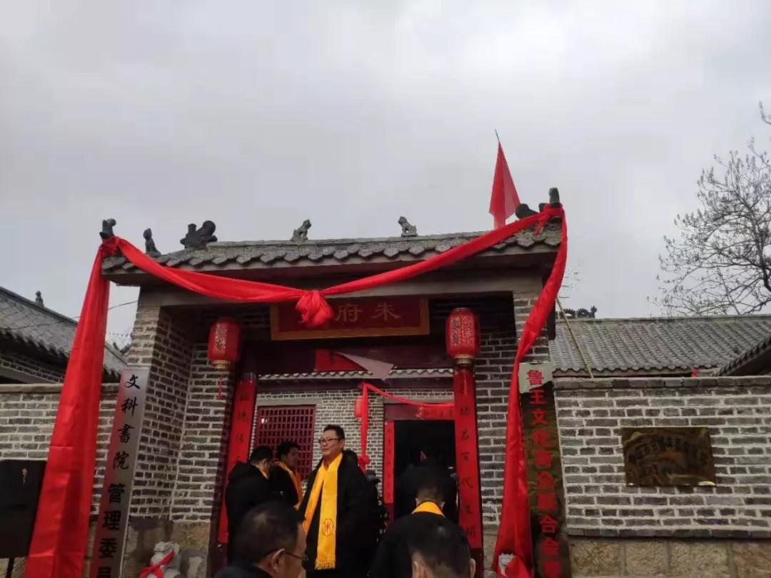朱府第文化大院落成庆典在枣庄市山亭区东山腰村隆重举行 原创 朱玉建 朱氏文化论坛 昨天 朱府第文化大院落成庆典 2019年12月24日,朱府第文化大院落成庆典在枣庄市山亭区东山腰村隆重举行。兖州鲁王文化商企联合会会长朱明川、副会长朱广玉、秘书长广勇等人莅临参加并发表了致辞,来自全国各地30多个地区的东山腰支系家族成员参加了庆典活动。 复建后的朱府第文化大院,正堂五间,青砖灰瓦,脊顶双龙戏鼎,山墙瓦上十二属相兽。木门香窗,古色古香。正堂后墙上挂着明太祖朱元璋,明鲁王朱檀,迁始祖镇国将军朱以治巨幅画像,庄严而肃穆;东西厢房各两间,东厢房是会议室,桌椅摆列整齐,西厢房是文科书院阅览室,西墙三块牌匾上,记录着古滕朱氏家族的光辉历史。书橱里《明史》《永乐大典》等珍藏书籍应有尽有,透出浓浓的文化气息;坐北朝南大门楼檐下石鼓旁立,门外两旁石兽威风凛凛。大门口高高的旗杆上,五星红旗迎风飘扬,让人肃然起敬。