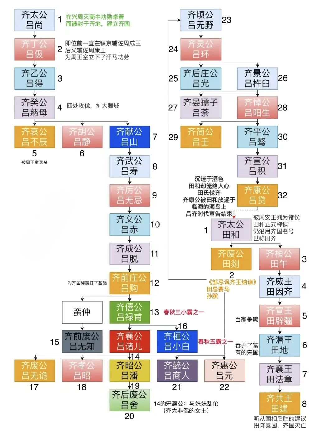 齐国国君在田氏代齐之前姓姜或吕,田氏代齐之后姓田。而陈是田氏始祖陈完在陈国时的姓氏,到齐国后陈完改陈姓为田姓。 姜姓吕氏时期 齐国开国君主是姜太公吕尚,他因祖先曾被封在吕地,所以也姓吕,被封于齐地后建立了姜姓吕氏齐国。 田姓时期 春秋时期,陈国公子陈完因避祸逃到齐国,被齐桓公任命为工正,并将陈姓改为田姓,叫田完。田完的后代在齐国逐渐发展壮大,经过数代人的努力…