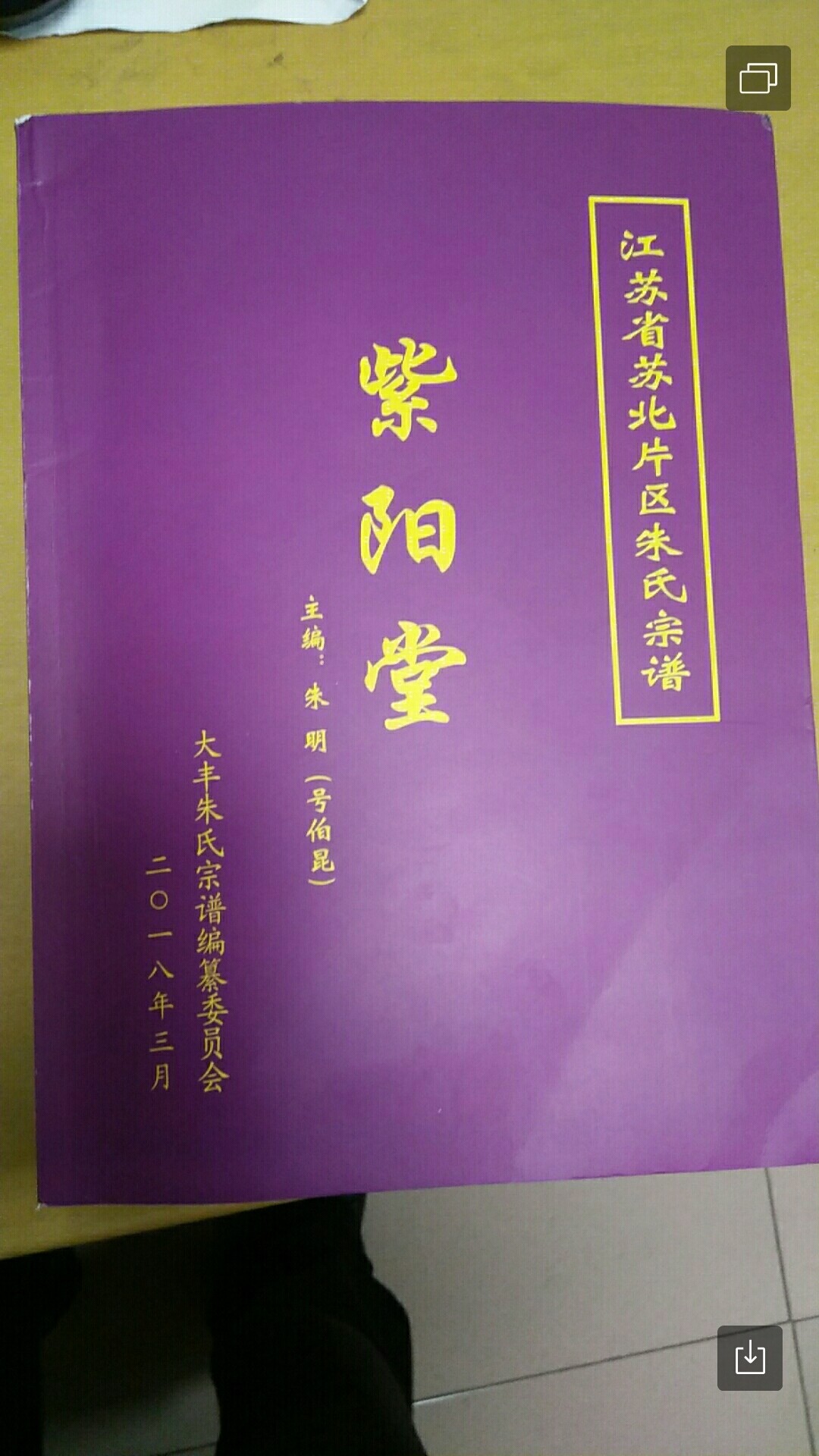 朱明者,何也,乃一宗亲宗长。笔者从未见过朱明宗亲,何来印象乎?但是,细细品来,印象的的确确存在。2019年10月28 日,看着朱明宗长寄来的厚厚的紫色的《紫阳堂》家谱,心中腾然升起了一种似曾相识燕归来的感觉,一种沉甸甸的温暖的感觉。