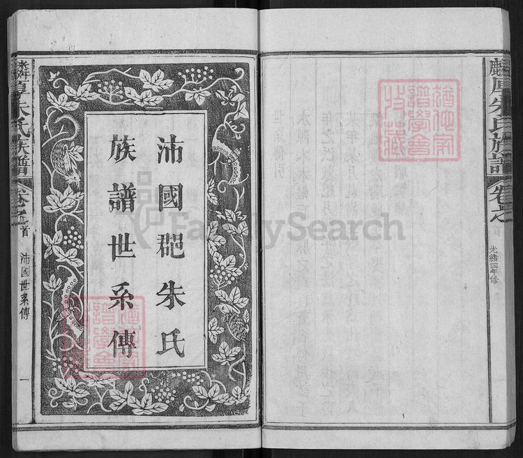麟厚朱氏族譜[8卷, 首末各1卷, 補遺2卷] : 12冊 : 1-9冊, 1908 犹他州家谱学会收藏,电子版50-69页。 始祖光宗(字克紹,行五),宋代自河南遷居福建閩清縣滄峽里。十一世孫癸七,遷居永安奇河,為永安始祖。始遷祖千五郎,癸七五世孫,約於元明之際遷居永安小陶鎮麟厚。卷二至六世系傳,卷全新序、壽文、壽序、傳、爾貞自記、墳圖、約據、名目、補遺。存卷二至六、卷全。记录始迁祖;始遷祖朱癸七,生于宋;始祖朱光宗,生于宋;先祖朱千五郎,生于明。