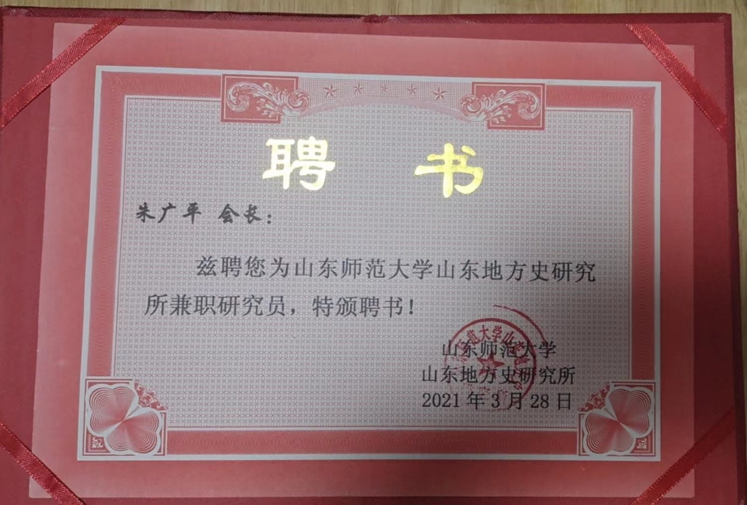 朱广平等被聘为山东师范大学兼职研究员