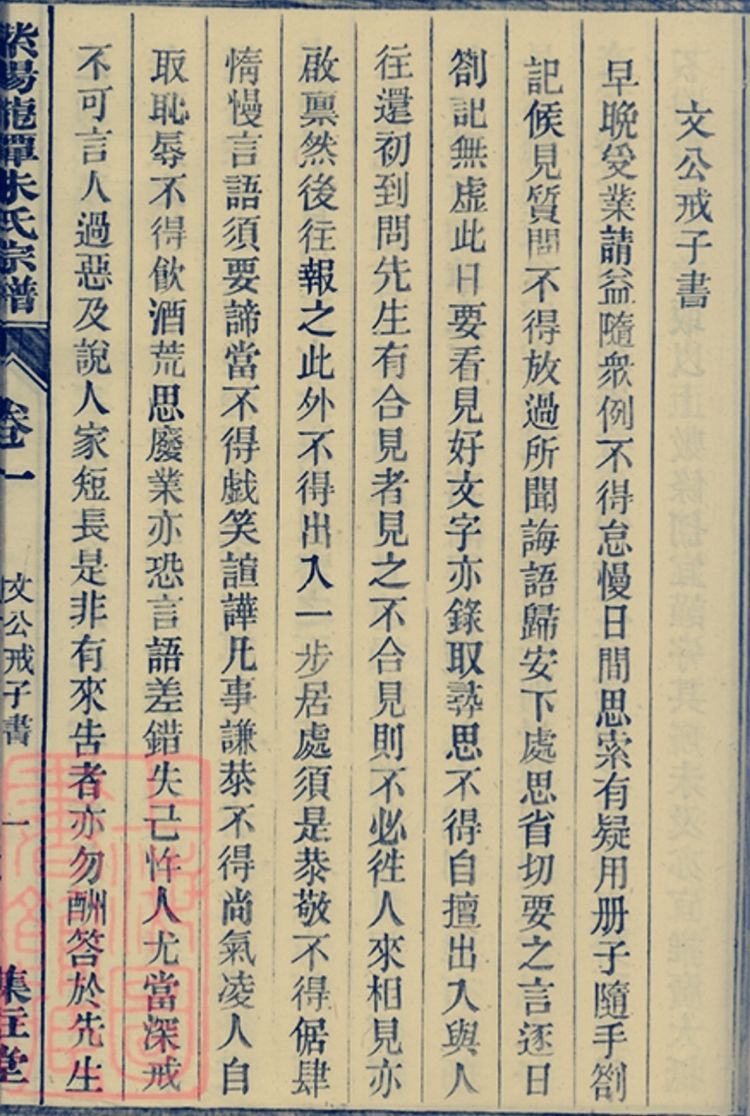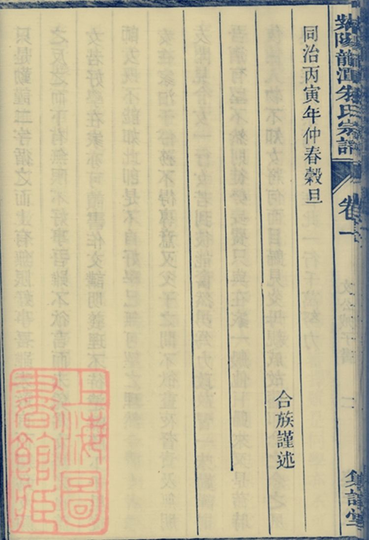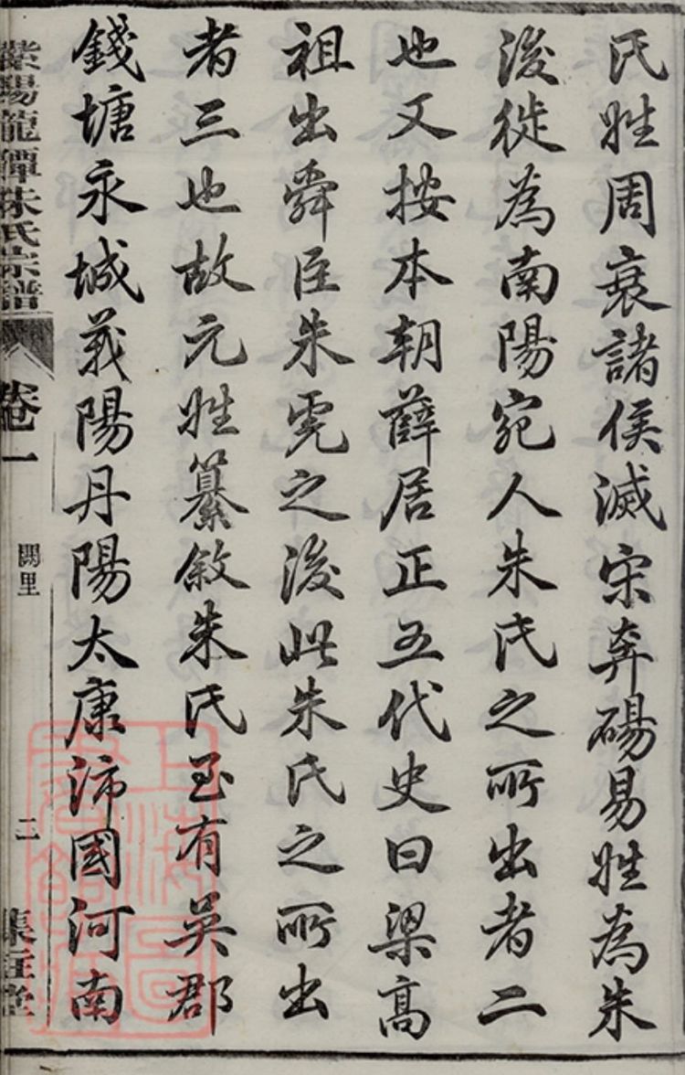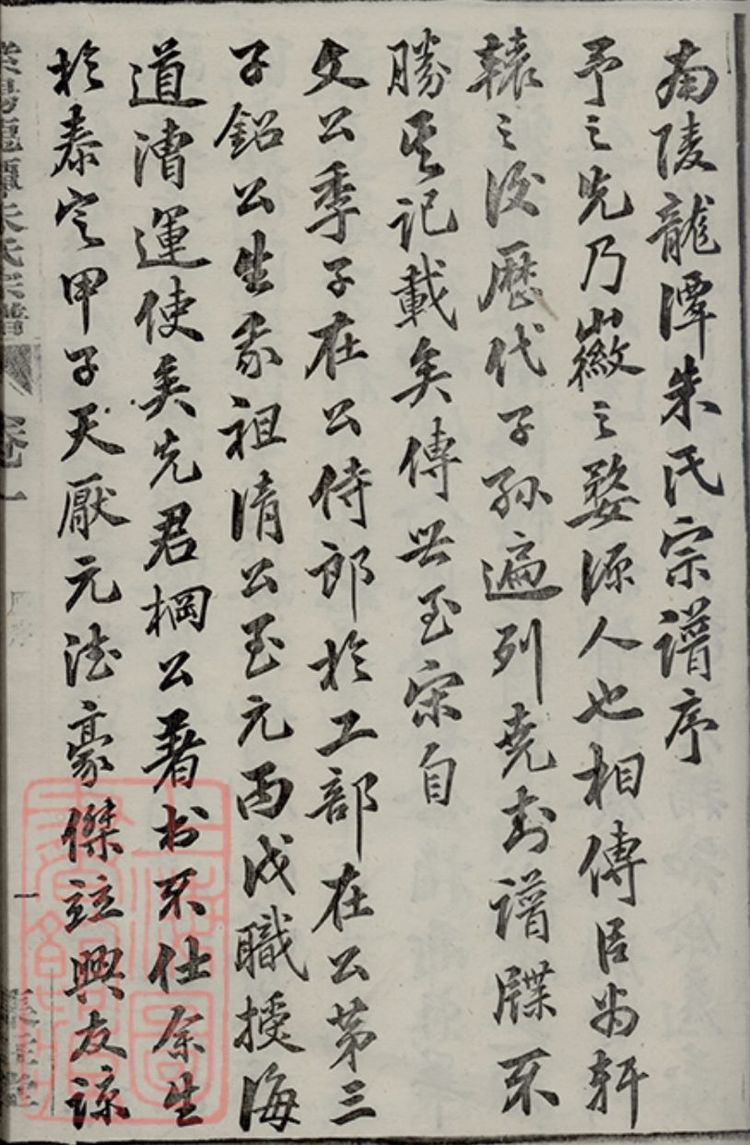 紫阳龙潭朱氏宗谱: 三十八卷堂号:集註堂版 本:民国6年(1917), 木活字本 朱秀芝纂始迁祖:朱秋崖 始祖:朱熹摘 要:始迁祖秋崖,朱熹六世孙,避元季之乱,自徽州婺源徙南陵县龙潭渡。卷一家礼、家训、家志、家法、家戒、记、序、宗派、名宦录,卷二至三家传、行实,卷四至三十八世系,末卷产业。