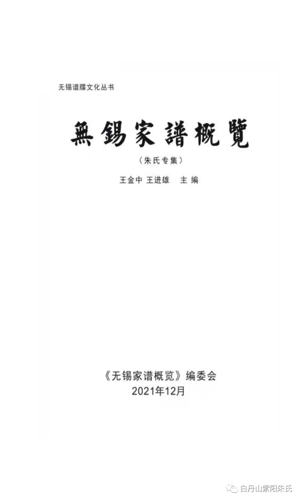 无锡家谱概览--朱氏专集