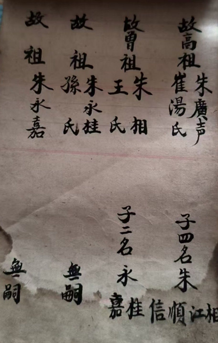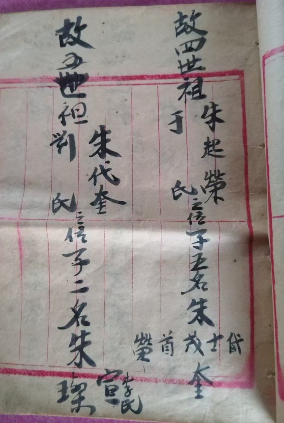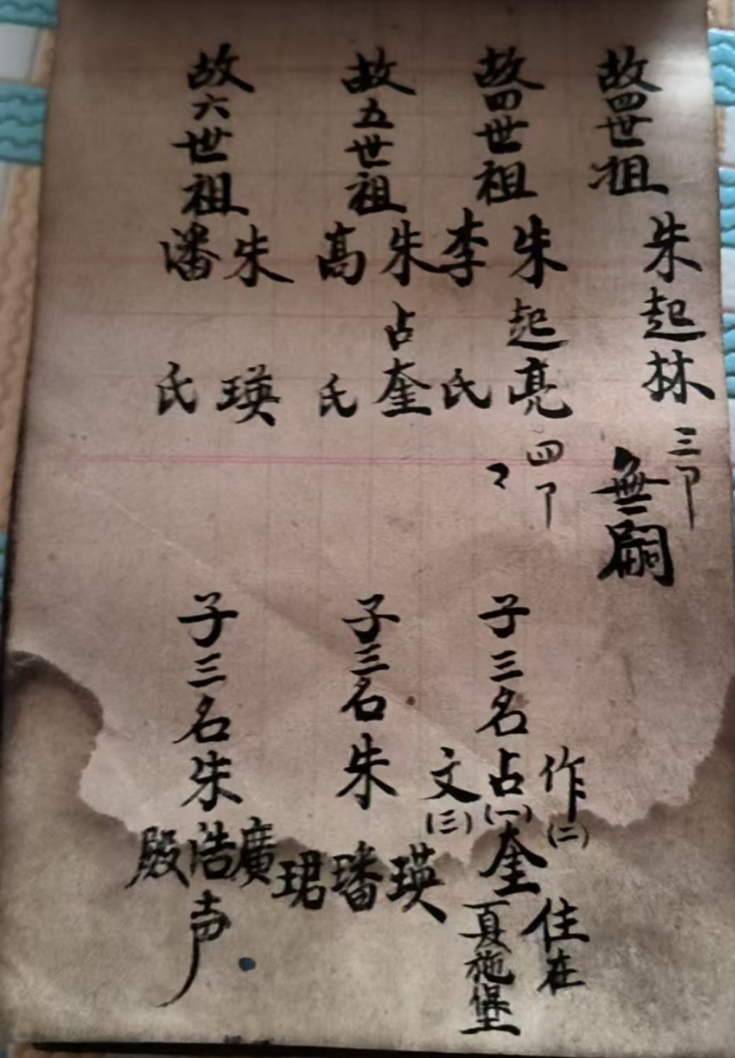 我估计我们祖先朱由春到内蒙以后待几年过段时间发现不可靠怕被围攻后来就转移到东北三省了!我们四世祖老大朱起龍在我们四世祖朱起亮和五世祖朱起荣一代一代传下来的家谱中都没有记载!也就是说朱起龍的后人和我们都失联了!我感觉就是在内蒙那后来就有变化了!