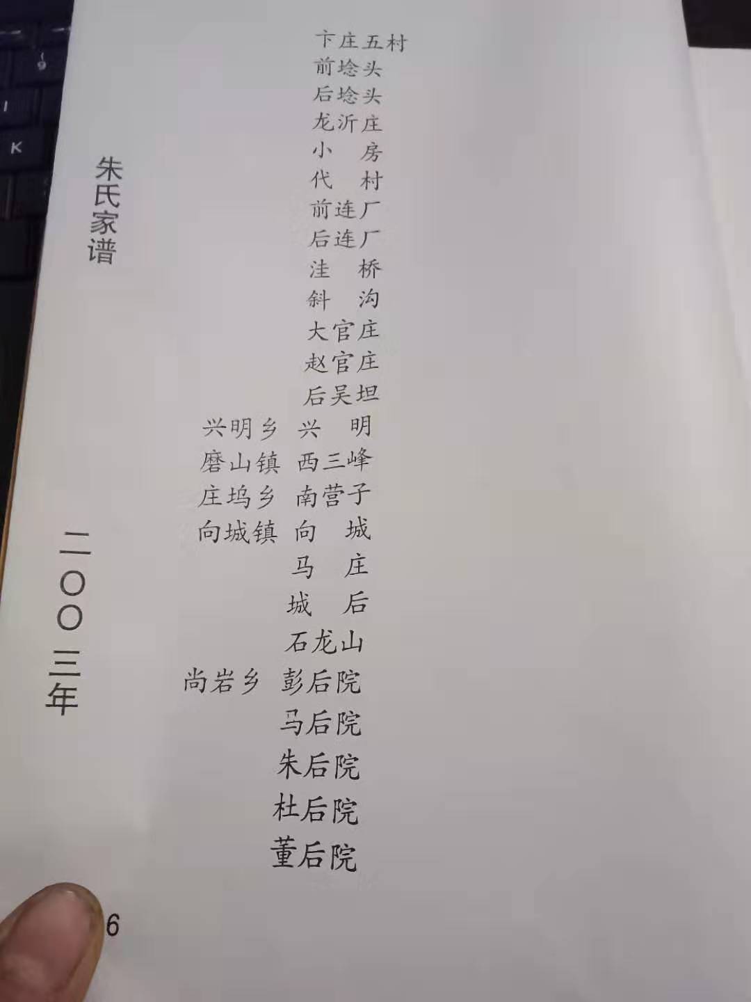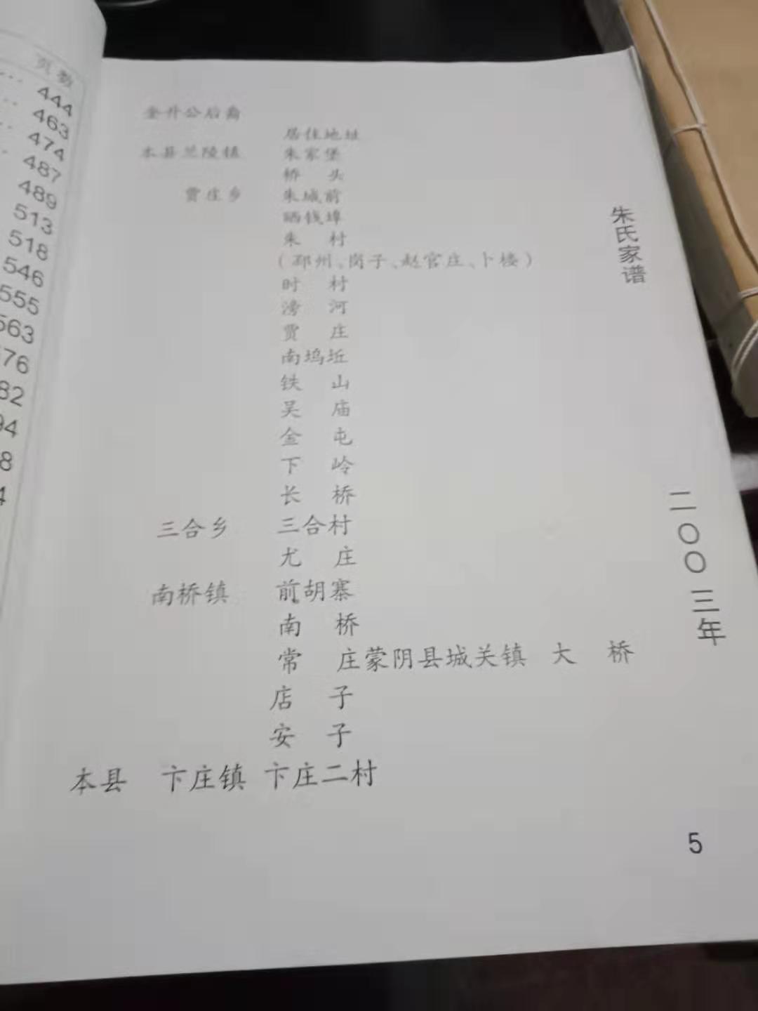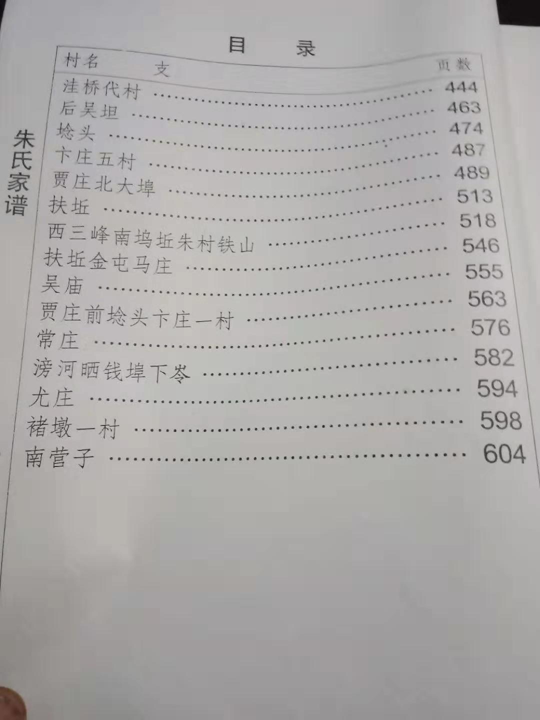 您好,我老家是山东省临沂市苍山县(前两年改名叫兰陵县)尚岩镇朱后院村,我看你发的第4张图片,目录中第282页,就是我们“朱后院”的族谱,我离开老家很多年了,很想从您这里得到我们村的相关内容,方便拍照发给我吗? 我叫朱广全,现居河北邢台市,手机是18233030353