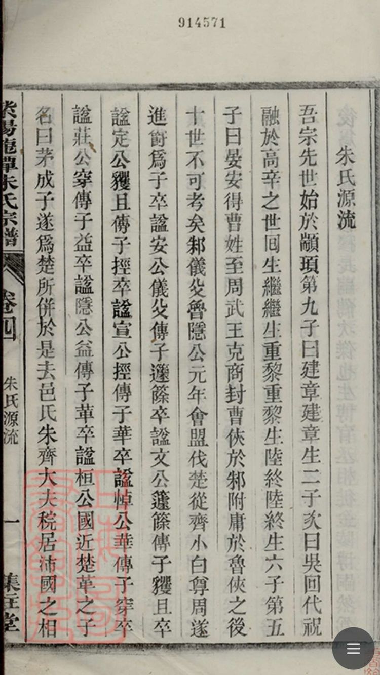 一、远古源流世系 人之有祖,犹木之有木,水之有源。故古人每岁孟春聚会以修谱,敦睦族情,而亲亲孝思之人,仰报先世积累之德,衍绵绵之泽无穷。文公有曰:“明伦之所以正分,辨姓之所以端本,古宗谱岂容荒废”。 考我朱姓祖先,乃始于古代,一直追溯到黄帝,大约公元前 27 世纪,中国中原地区的华夏民族开始建立起最早的国家政权——酋邦,并产生了中国历史上最早的一位君主。这位君主的称号,就叫做“黄帝”。 黄帝本姓公孙,他的父亲原是统治今河南省新郑一带的有熊国的君主,名叫少典。因生在轩辕,就取名叫“轩辕”。少典娶有蟜氏部族的女子附宝为妻。后来,黄帝成为部族首领,他的部族主要活动在姬水流域,他因此又以姬为姓。黄帝在位 100 年,活了 111 岁才去世,葬在桥山,其墓即今陕西省黄陵县北桥山的黄帝陵。 黄帝一生娶了 4 位夫人,生了 25 个儿子。其中,正妃累祖生 2 子:昌意、玄嚣。昌意一支,居住在若水(即今青海墨曲、四川若尔盖和岷江上游—带。 黄帝生昌意,昌意生韩流,韩流生颛顼(高阳氏),颛顼像他的祖先黄帝一样,也是中国历史上的一个大圣大贤之人。他出生在若水,少年时随着部族不断顺黄河流域东迁,后加入少昊东夷部落,定居于穷桑(今山东曲阜县)一带,因此又号穷桑氏。颛顼少负大才,年仅 10 岁,便成为东夷部落首领少昊的得力助手,20 岁时,便继承少昊的帝位,成为东夷部落酋邦的首领,建都穷桑。颛顼生称,称生卷章(又曰老童),卷章生重黎和吴回,吴回生陆终。陆终生六子,第五曰晏安,赐曹姓。周武王克商,封安的苗裔曹侠于邾国。子孙以国为姓(邾)。