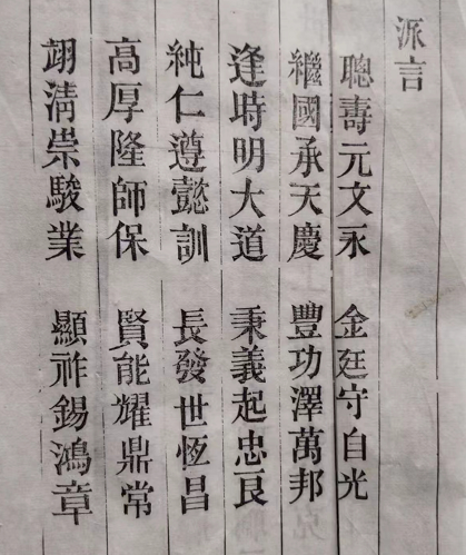 湖北武汉新洲区朱氏派言 聪寿元文永 金廷守自光 继国承天庆 丰功泽万邦 逢时明大道 秉义起忠良 纯仁遵懿训 长发世恒昌 高厚隆师保 贤能耀鼎常 翊淸崇骏业 显祚锡鸿章