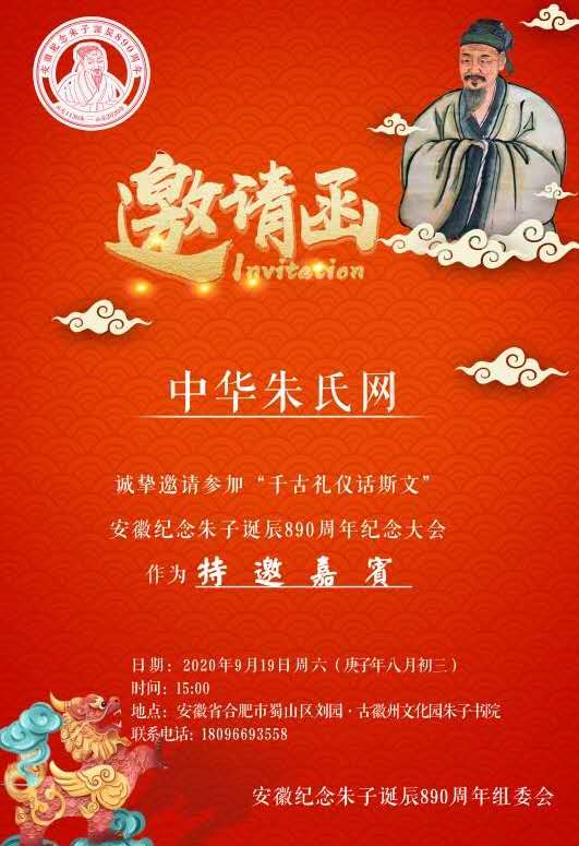 中华朱氏网被安徽纪念朱子诞辰890年组委会聘为特邀嘉宾