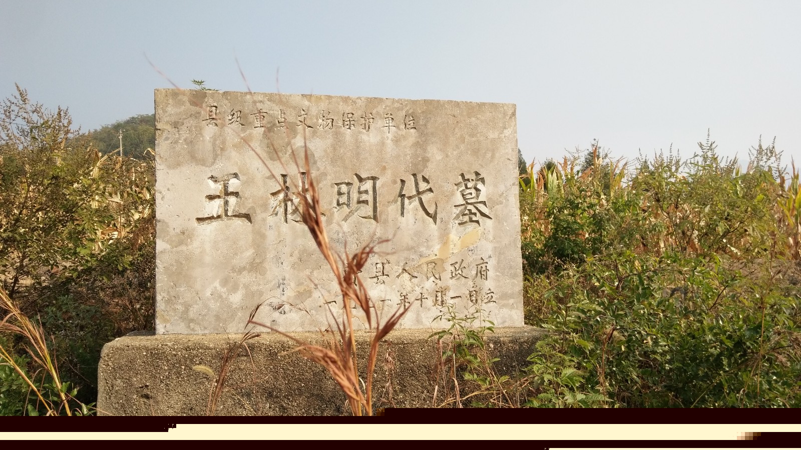 明泾简王妃曹氏属于沂州前人,已作古数百年,历史的风尘已经淹没了曾经的荣光。经过“文化大革命”等破坏,墓地已不成样子,荒草丛生,片片庄稼地,一片荒芜。我们经过庄稼地时,村民把我们当成来买墓地的人。在泾王妃墓的周围,埋起了大大小小的坟包,有的墓碑很新;在南北路的西侧,还有圈起了低矮的围墙,形成了一块块墓地,周围栽上青松,在崭新的墓碑上镌刻了逝者本人以及子孙后代的名字,却没有记载祖宗来源的任何信息。当代社会到普遍有钱却无文化的时代了。