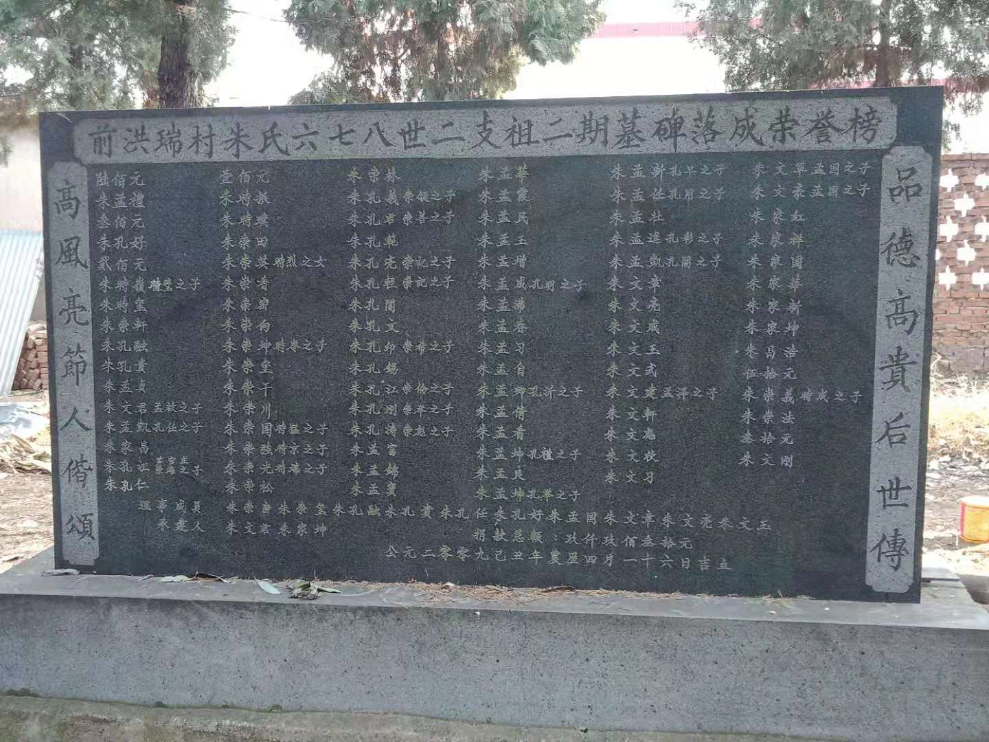 临沂兰山区李官镇杭上村朱姓一支,祖上传说籍出河东洪瑞!多次寻续未果!经杭上村朱连永宗亲与洪瑞朱孔元宗亲,用心核对考证,确认糸瑞鹊堂三世三支外出朱洪礼一支!朱从霡子朱之鼐,朱之鼐子洪礼,外出落户杭上村,开创基业,瓜瓞绵绵,人丁兴旺!于今日农历二零一九年十一月十三,举行认祖归宗仪式,接续入谱!可喜可贺!