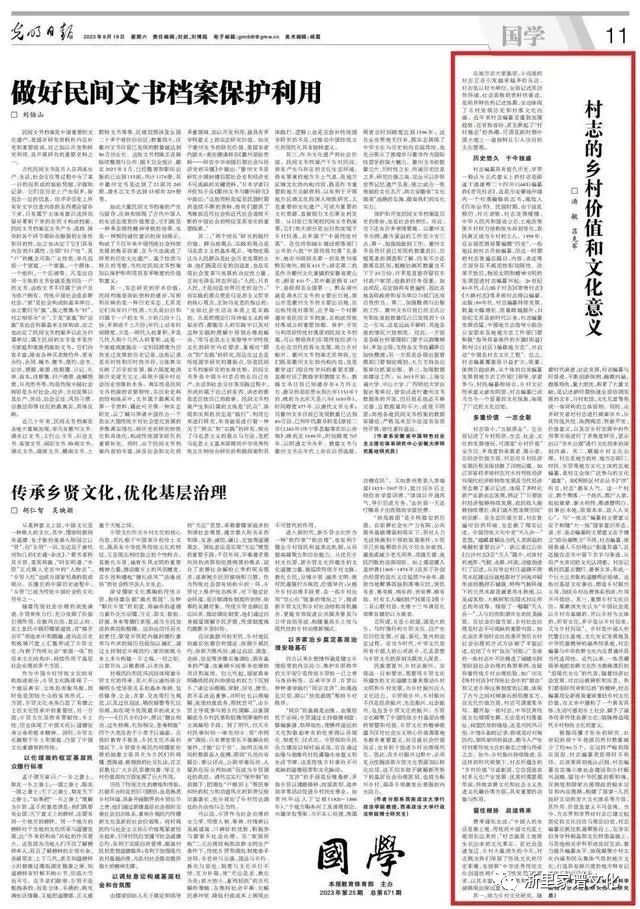 在地方志大家族里,小而美的村志正在引发越来越多的关注。村志是以村为单位,全面记述其自然环境、社会面貌的资料性著述,是别具特色的记述体裁,生动体现了乡村发展历史和村落文化内涵。近年来村志编纂呈蓬勃发展趋势,在有些省份,甚至掀起了“村村修志”的热潮,可谓是新时期中国大地上一道独特且引人注目的文化景观。
