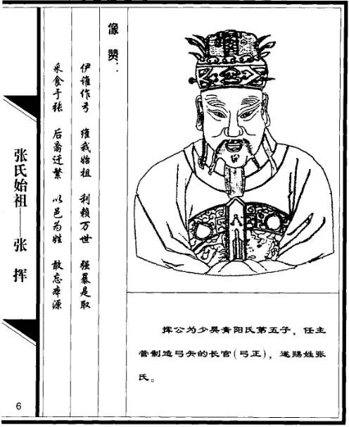 张氏出自黄帝之后代挥。据《新唐书·宰相世系表》、《通志·氏族略》及《元和姓纂》所载:“黄帝少昊青阳氏弟五子挥为弓正,始制弓矢,子孙赐姓张氏。”由此可知,曾经是重要武器弓箭的发明者挥,其后以张为姓氏。 在当时人类基本以狩猎为生,弓的发明是一件很了不起的大事。于是黄帝封挥为专门制造弓的官,叫“弓正”,也称“弓长”;又将官名合二为一,赐他“张”姓。张挥成了张姓人的始祖。