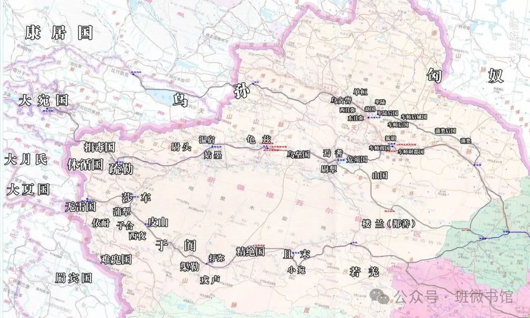 2010年7月,李娟出版了散文集《我的阿勒泰》。2024年5月同名电视剧首播,再次带火了新疆维吾尔自治区(以下简称新疆)旅游热。5月18日,中国东航恢复执行“上海浦东-新疆喀什”直飞航线,至此东航在新疆共有乌鲁木齐、阿勒泰、阿克苏、博乐、库车、库尔勒、克拉玛依、喀什、和田、莎车、伊宁、图木舒克12个航点。而这些航点则可以通达疆外的上海、北京、江苏、云南、陕西等8个省市11个航点,平均每周起降航班达240余架次。 喀什,这是个让我无法释怀的地名,虽然没有去过,却仿佛神交已久。只因为老祖先班超曾经战斗生活过的地方,就足以令我对其充满神奇的吸引力,梦里无数次跨过叶尔羌河,踏入疏勒国界,进入盘橐城,一页页画面,接连飞过。那城上有我汉家使者,胸存壮志,指挥若定,通西域,镇邦国,战沙场,纵横捭阖,威服万里之外,这是一个真实的传说。 定远传奇,名不虚传! 汉使班超,率三十六骑通西域,服五十余国,是真的吗? 西域究竟有多少国?班超又真正去到哪些国呢?