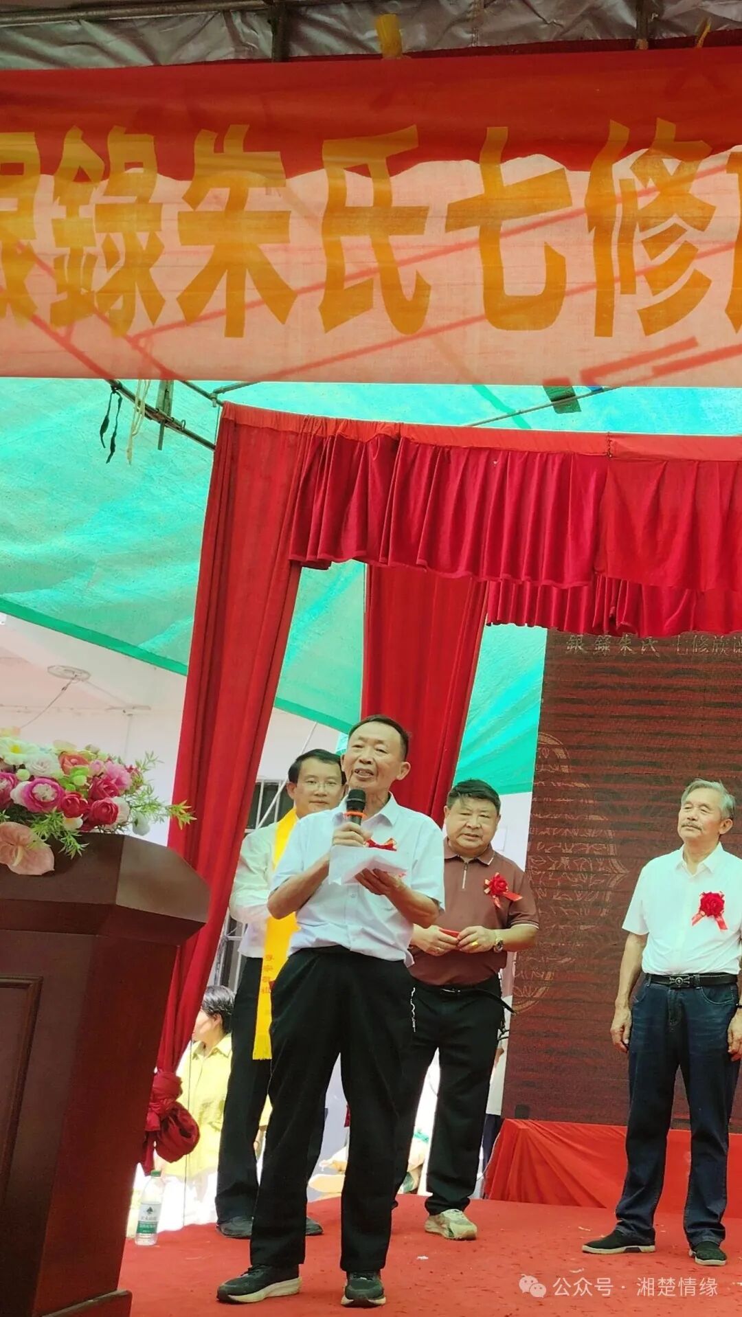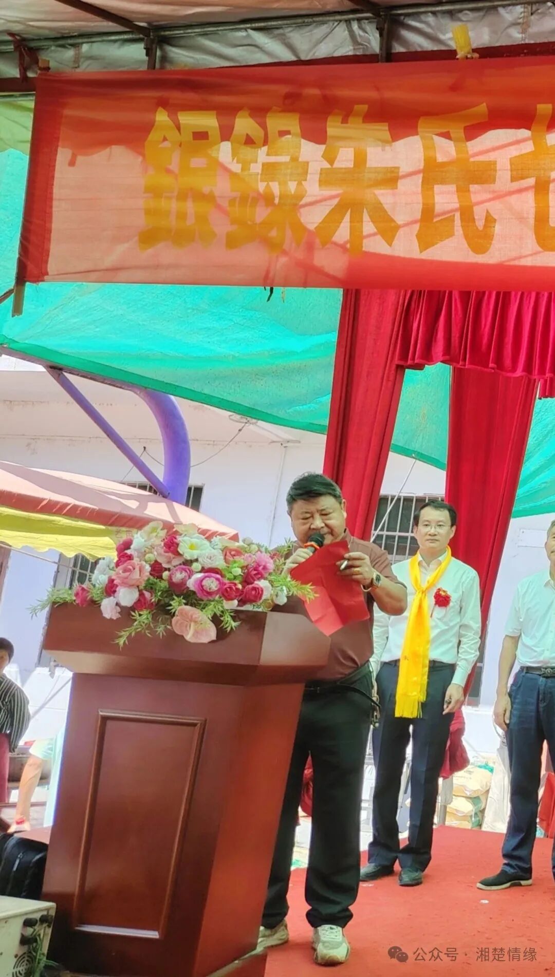 参加典礼的还有同为吉安始祖铭公后裔的双峰大石、大塘朱氏兄弟支派宗亲代表,以及银录、花桥等5个村的村、支两委领导,还有来自银录、花桥、石坑岭、江木岭、横岭上、黄江朱家冲、观音桥、白杨山、武桥、长稼冲、石山冲、高山观、高堂冲、高梓、专塘铺、长山冲、檀木山、麦石坪、龙狮井、老鸭观、桥石滩、石板村、洪福桥,和雀塘牟尼寺,严塘芭蕉村,潭溪十里桥,潭府竹田湾、文江、炉门前,太芝庙白杨坳等地的宗亲。
