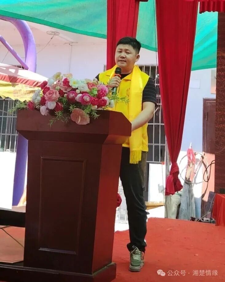 银录朱氏祖居地东道主代表、俊福公廿二世华房后裔训译字路遥宗亲再次上台讲话。作为东道主,他首先对远道而来的宗亲与嘉宾表示热烈欢迎,感谢大家为七修族谱竣工颁谱典礼增添光彩。随后,他介绍了银录祖居地的发展情况,讲述了祖地宗亲为支持修谱所做的努力,并表示将继续做好祖地建设,为宗亲寻根问祖、团聚交流提供更好的环境。他的发言充满热忱,尽显地主之谊,让在场宗亲感受到回家的温暖。