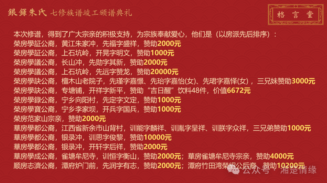 七修族谱颁谱典礼得到了广大宗亲的大力支持,为宗族奉献爱心,在此表示感谢!