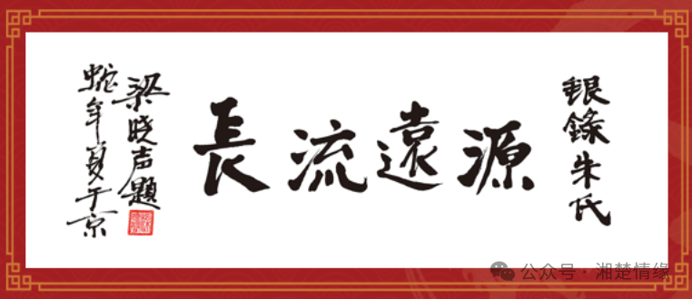 典礼现场,还上演了一段跨越135年的宗族情谊故事。清光绪十六年(公元1890年)四月初夏,一位28岁的青年才俊,从双峰杏子铺(当时还属湘乡)赶到邵阳银录朱氏宗祠谒祠祭祖。他就是光绪十五年己丑恩科湖南乡试的举人——朱鑫镕。27岁中举,且夺得魁首,可谓是年少得志,意气风发!银录族人对鑫镕公的到来极为重视,以最高的礼遇接待,28位族贤齐聚作陪。由于银录朱氏历史上从未出过举人,而同为吉安远祖铭公后裔的大塘朱氏却出了这样一位优秀的年轻举人,因此,鑫镕公的到访令银录族人倍感荣耀——虽共祖不同支,却共享这份喜悦。想必,鑫镕公返程时,银录族人应当是资助了他一笔不菲的银钱,也就是今天所说的“大红包”,支持他进京赶考,祈盼先祖庇佑鑫镕公能够高中状元。那时,银录朱氏正在三修族谱,便邀请鑫镕公作序,他欣然提笔,写下了这篇三修谱序,为吉安远祖铭公后裔深情厚谊、世有往来留下了永恒的见证。