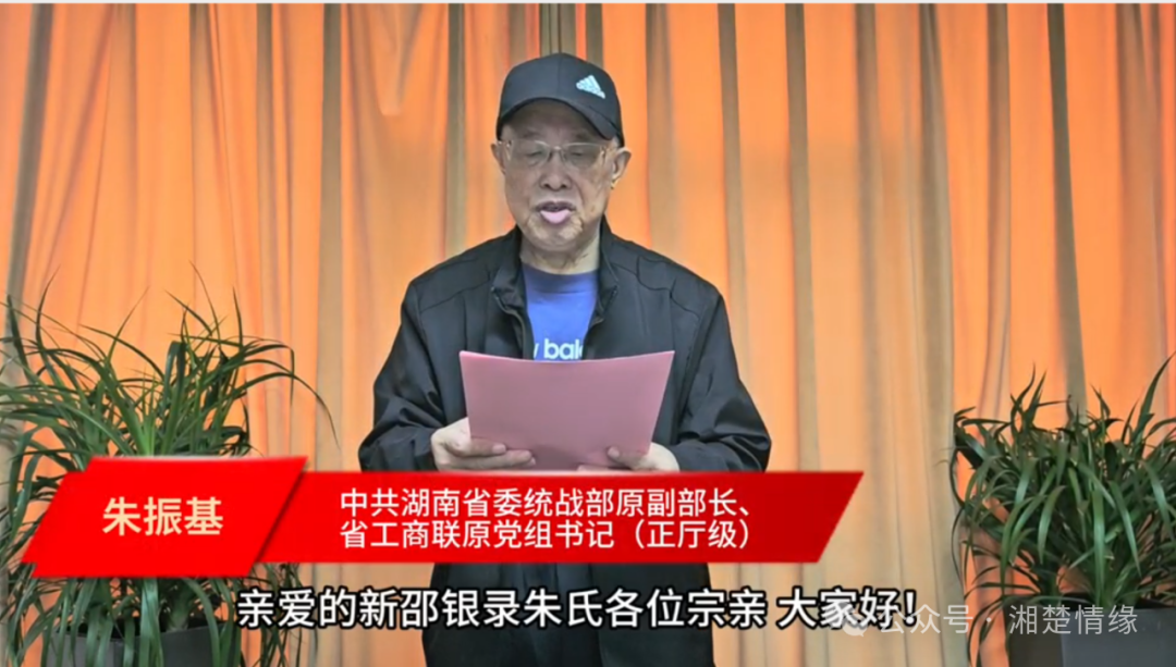视频播放过程中,振基先生深情讲述了双峰大塘朱氏与银录朱氏的渊源,对七修族谱的竣工表示热烈祝贺,同时勉励银录朱氏宗亲传承祖德、团结互助,为家族发展与社会进步贡献力量。他的话语虽隔着屏幕,却充满温情与力量,让在场宗亲深深感受到前辈的关怀与期望。