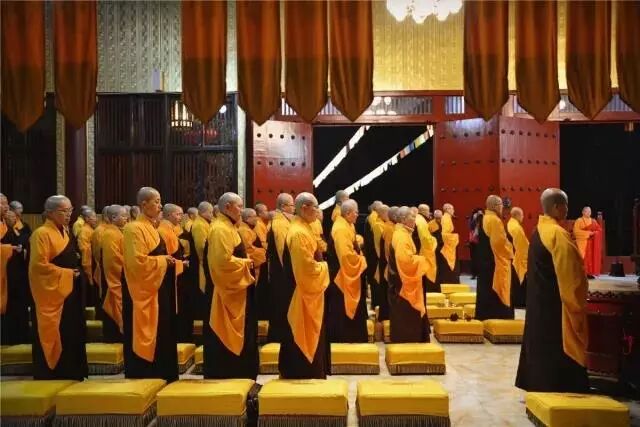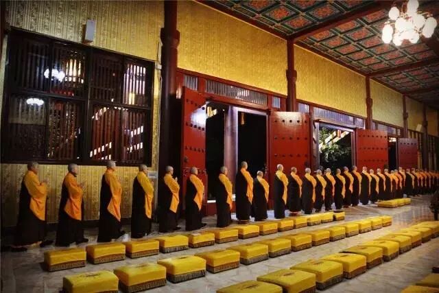 在大雄宝殿内,梵音缭绕,香烟袅袅,全体师僧威仪庠序,一举一动,感染着每一个人。