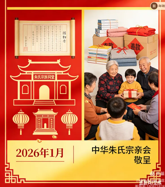 中华朱氏大家庭平台资金募集捐赠报告(2026.1月)