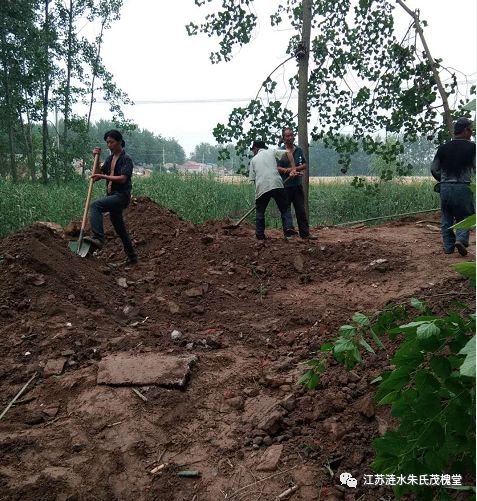 2018年5月28日,对于位于江苏涟水朱氏朱氏家族来说是个不寻常的日子,上午七点半,在寿耀先生的指挥下开始修葺墓基,这一天是很特别的一天,这一举动牵动了每位朱氏茂槐人的心,大家都希望朱家祖坟再次呈现在大家的眼前,再次给我们朱氏茂槐堂祭祖、寻根带来了很大的精神寄托。这次朱氏茂槐堂宗亲积极响应宗亲联谊会发出的《告茂槐堂大朱舍宗亲书》,纷至沓来、争先恐后地自愿捐款,合全族之力齐心修祖坟,彰显了朱氏家族精诚团结、无私奉献的新时代宗族精神。