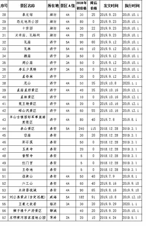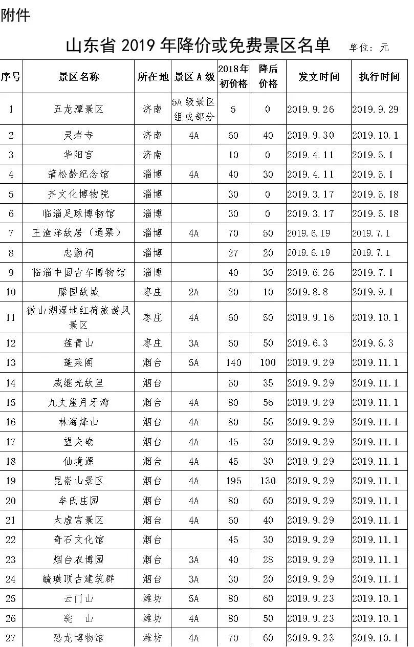 10月30日,从山东省2019年国有景区门票降价工作情况发布会了解到,山东省在2018年大范围、大幅度降低国有景区门票价格后,2019年持续大力推动曲阜三孔、烟台蓬莱阁、威海刘公岛等重点国有景区降价,扎实落实泰山景区改革整合降价举措,积极推进济南五龙潭、淄博齐文化博物院等景区免费开放,取得明显成效。