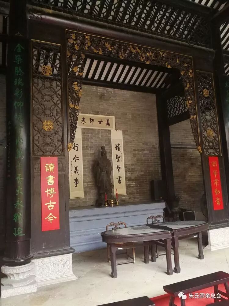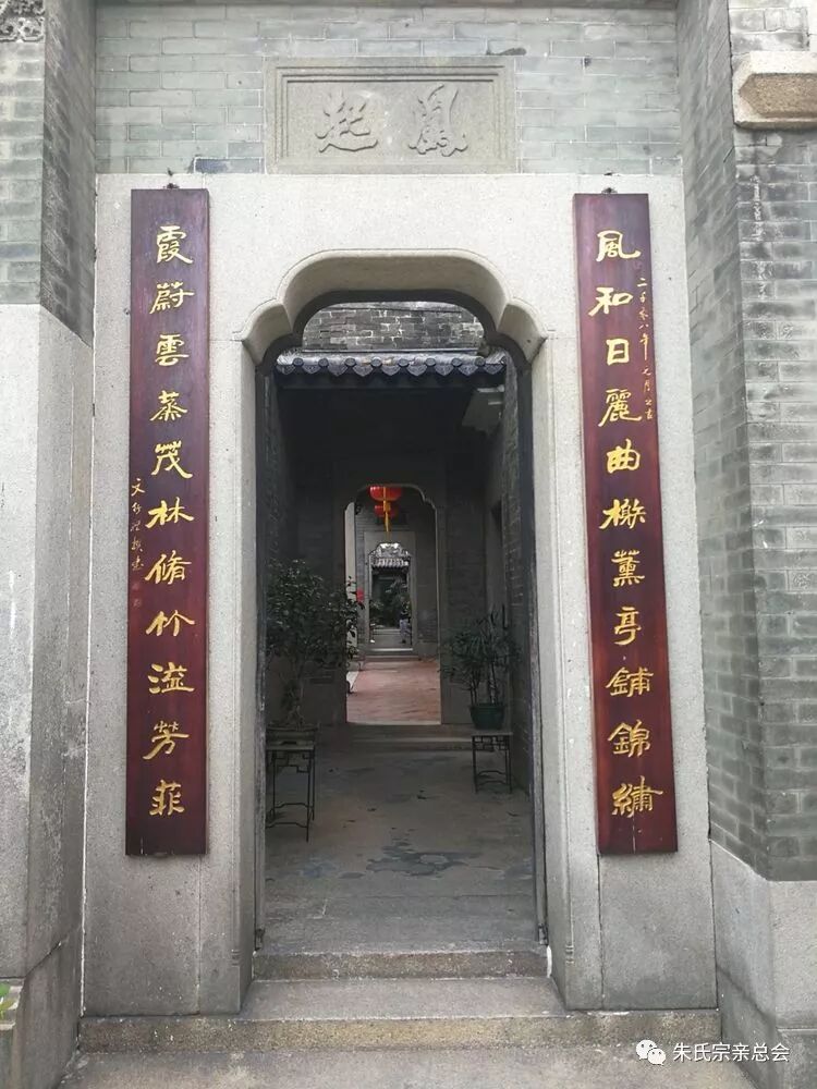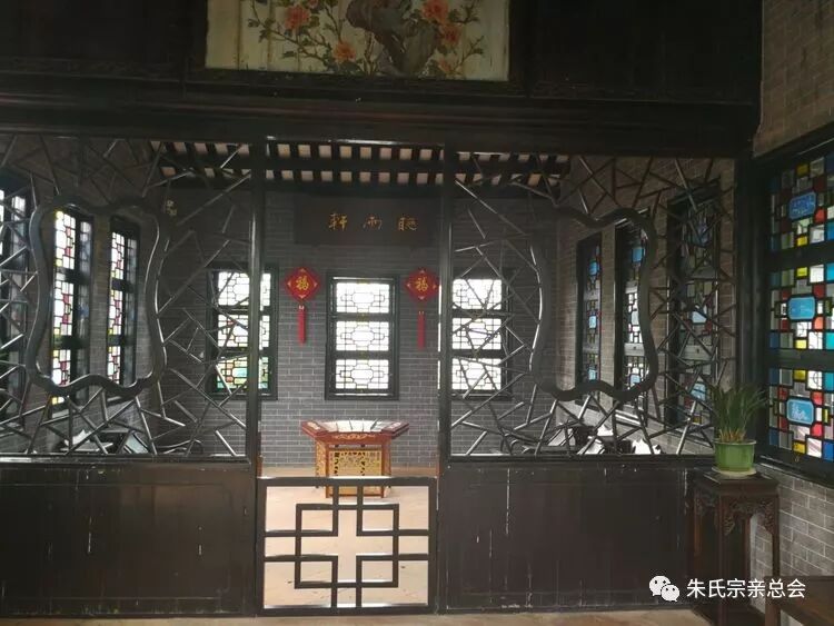 朱氏迁居合河十余世,未有祠堂,无地拜祭宗祖在天之灵,于清乾隆十年,九世祖自超公,十世祖正奇公、子照公,十一世祖学程公、瑞斋公,十二世祖玉韶公发起建造宗祠,后有十三世祖正四公创立正厅大门,十三世祖暮冉公造神龛、油门、隔扇屏,于清乾隆十三年宗祠落成。