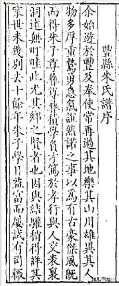 余始游于丰,及奉使常再过其地,乐其山川雄异,其人物多厚重鸷勇,急气谊、然诺之事,以为有古豪杰风。既而得朱子尊彝。尊彝积学负才,笃于孝行,与人交,表里洞达无町畦,此尤其乡之贤者也。因与结驩,稍得详其家世。未几,别去十余年,朱子学日益富,而屡试有司,輙摈。杜门却扫不出,亦不苟交于当世之士大夫。常被聘一修州志,退而述其先世之隐德懿行。凡其所以名于乡与闻于邦国者,具载一编,遣使走千里问序于余。嗟乎!自康乐有祖德之篇、潘岳有家风之集,惟贤子孙能不忘其先、厚其所自岀。今朱子乃能行古之道,亦足以见其笃行而有志也夫。朱氏系岀邾子,中叶递衍,迄无可考。或曰,丰故有朱陈邨,然二姓之后亦冺灭靡得而纪。朱子之谱其氏族也,将以征信也。援引附丽,非其所甘也,故托始于柳田公。柳田公生明世宗时,历今百数十年,其传世不可谓不永。虽无大显仕于朝者,而耆年硕行之士,代有其人。或终老布衣,或沈抑下僚,其通经学古者,或敎授生徒,髙尚其志。又或名闻公府,征辟屡及其门,悉能本于孝友,泽以诗书。自柳田而下,其可得而称数者凡有数世。其生材又不可谓不盛也。吾闻丰为西楚旧壤,古用武之国,英杰之所生。今朱氏乃能易其厚重鸷勇之习,而进之以孝友之风。诗书之义,一变至道,世济其美而无改于其旧,则朱氏亦将大矣。遂书之简端,使知务德力学之必有闻如此,且以告其乡之笃行而有志者。