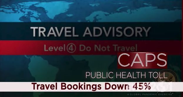 预演中提到的旅游业受挫、医疗业震荡、贸易危机、信任危机、都在今天的疫情中以极为惊人的相似度上演。