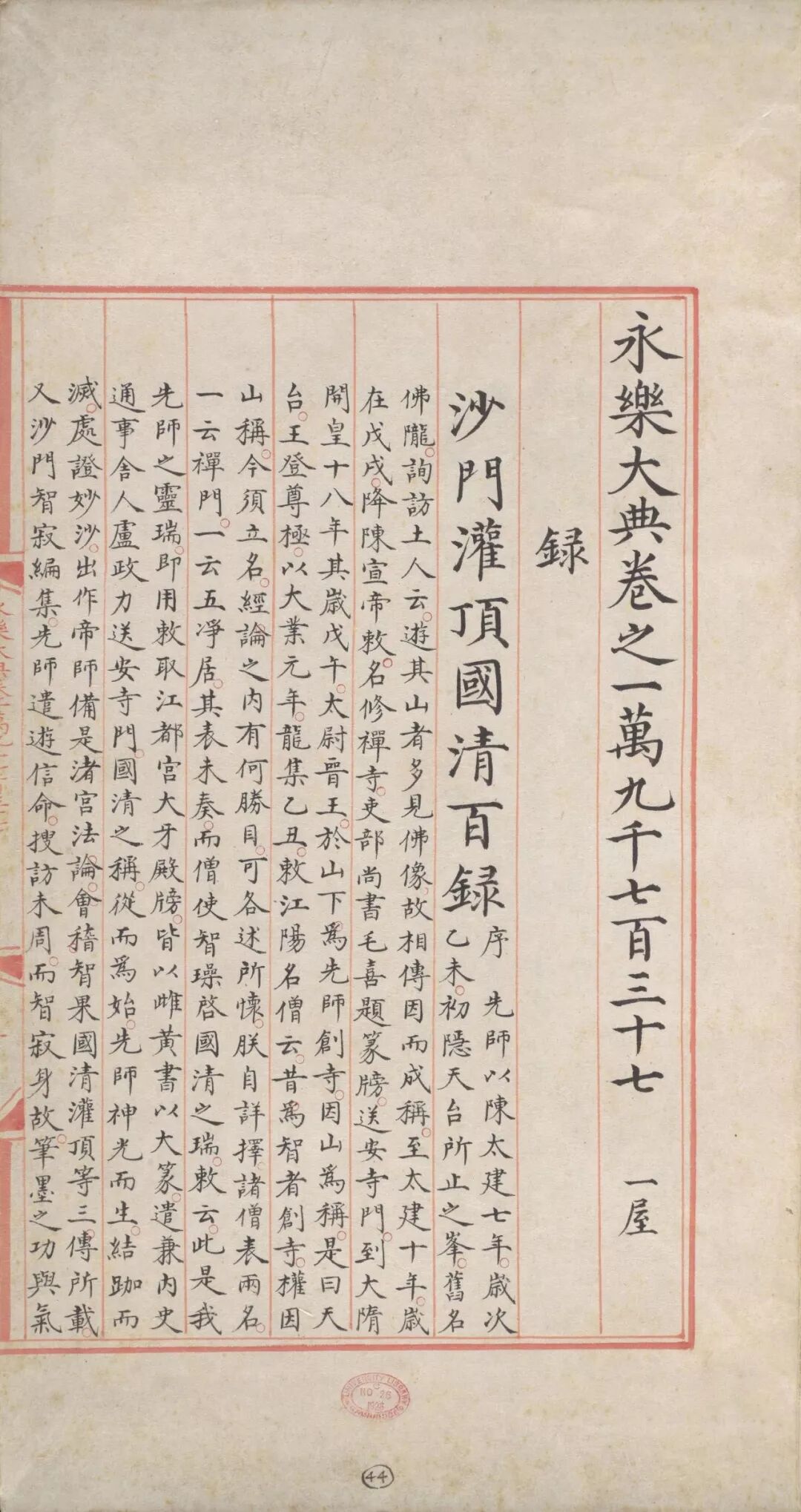 永乐大典.卷19737-19739.录字.明嘉靖隆庆间内府重写本.剑桥大学图书馆藏