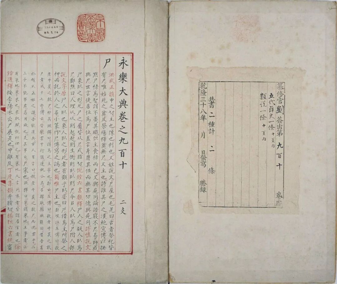 《永乐大典》于1408年修编完成,此后便被束之高阁。原书只有一部,现今存世的皆为嘉靖年间的抄本。正本存放于文渊阁(皇家藏书楼),副本存放于皇史宬(皇家档案馆)。
