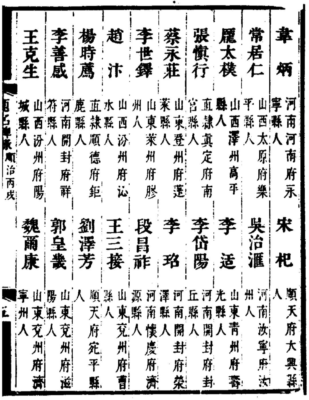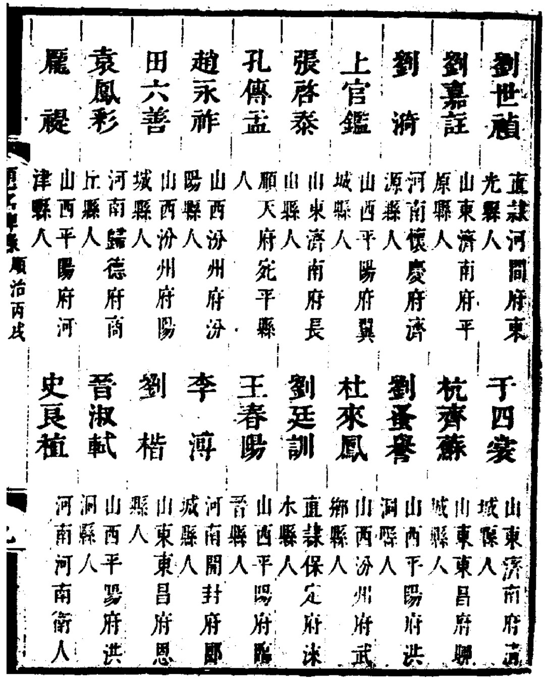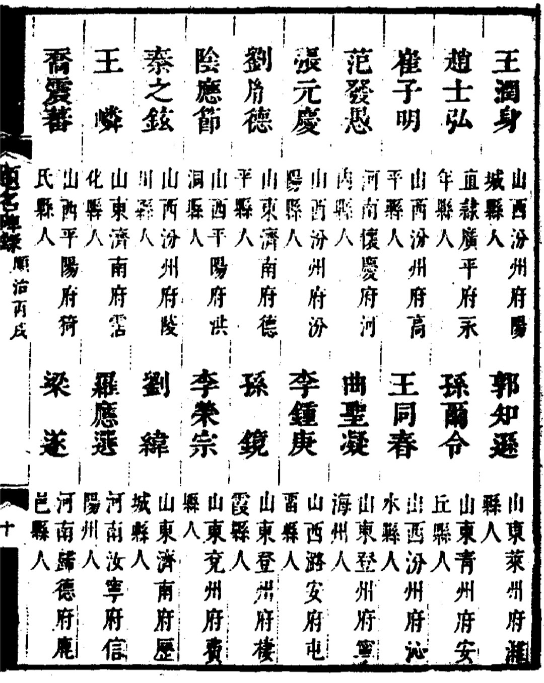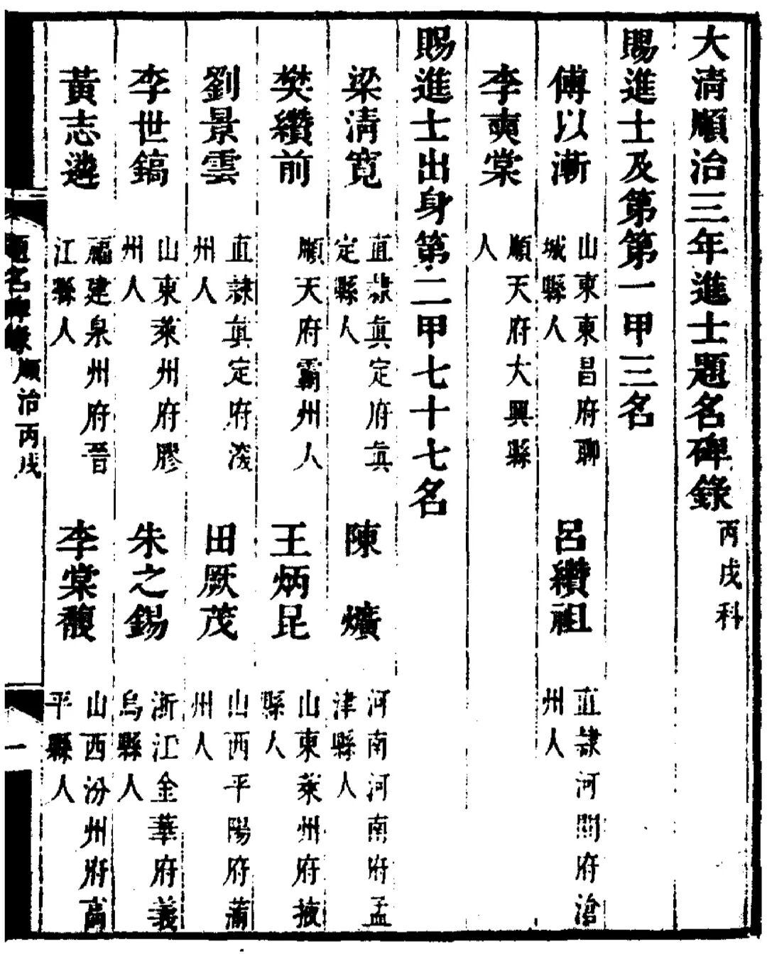 清代进士科举录(4):顺治三年丙戌科题名碑录
